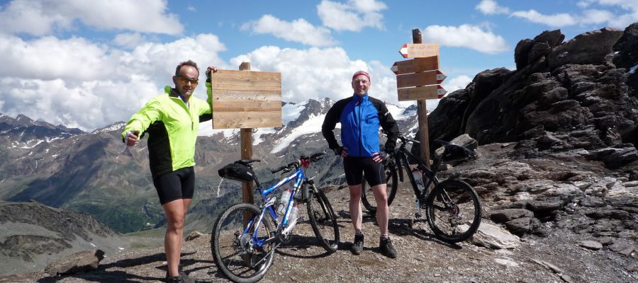 Gesamte Tourdaten 252 km – ↑ 9.792 hm – ↓ 10.617 hm – 5 Tage Etappenlänge 43 km – ↑ 1.645 hm – ↓ 1.779 hm – Fahrzeit: 3:52 Std. Zwischenstationen Passo Tonale Pezzo Passo Gavia Santa Catarina Unterkunft: Sporthotel Pedranzini  Tour Beschreibung Es hat über Nacht geregnet. Die Wolken hängen morgens noch sehr tief. Wir setzen uns ans Frühstück und es nieselt leicht. Ist ab heute unser Glück aufgebraucht? Wir hoffen nicht und weil die Hoffnung als letztes stirbt, klart es ein wenig auf und der