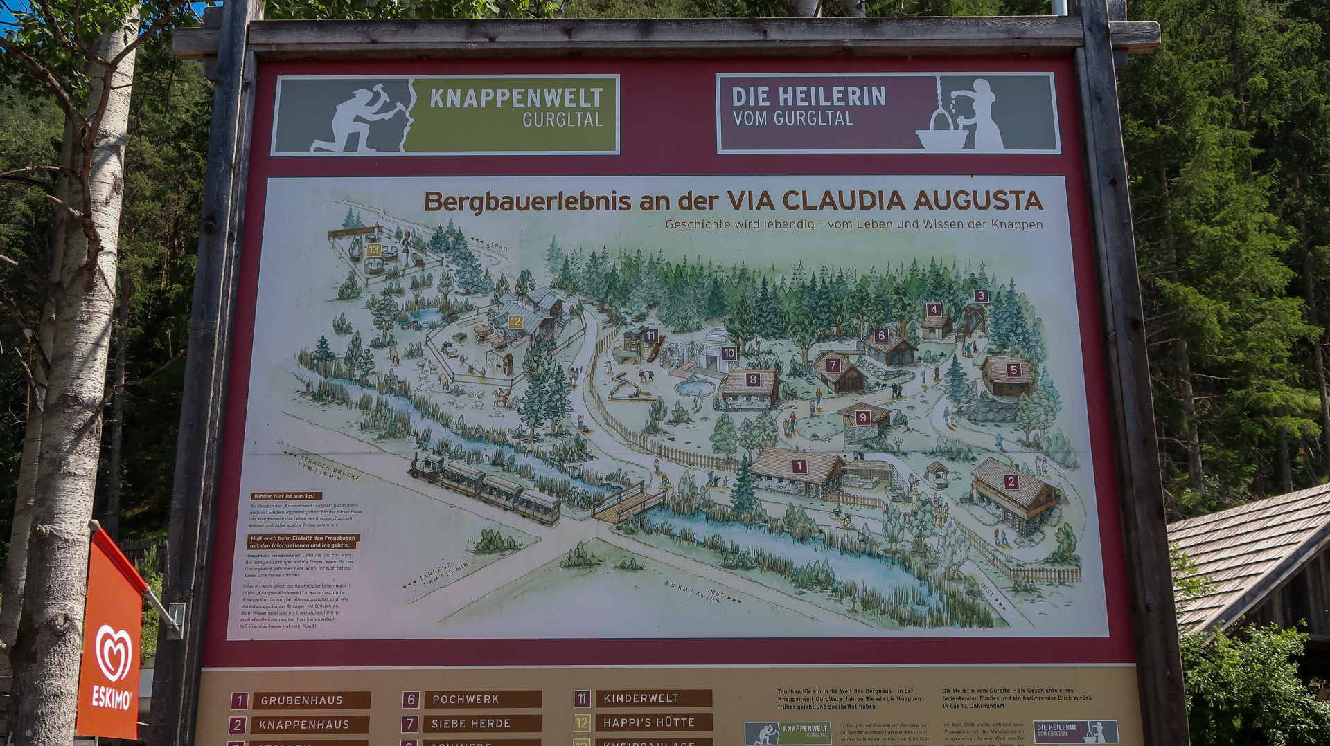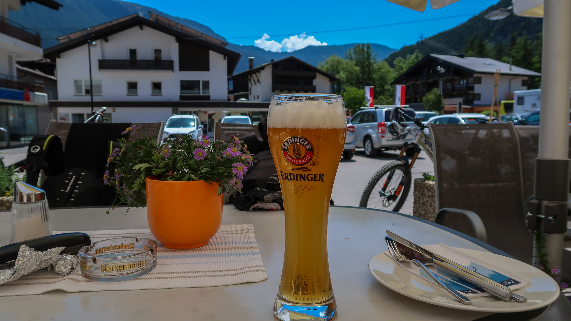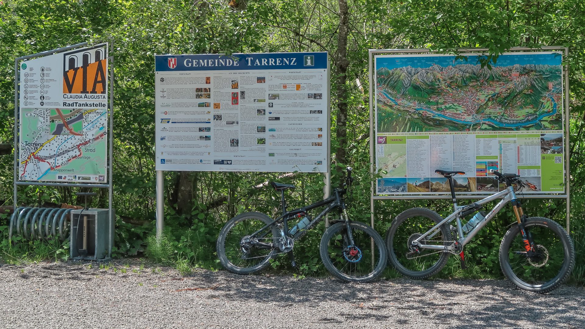 In Nassereith kehren wir ein und lassen uns ein kühles alkoholfreies Weizenbier schmecken. Es folgt nach dem Radweg nach ein schöner Wald- und Forstweg auf der Via Claudia, zum Teil schon etwas Trail lastig. Kurz vor Tarrenz treffen wir auf das Bergbaumuseum mitten im Wald. Von da sind es nur wenige Minuten bis zu unserem Hotel.