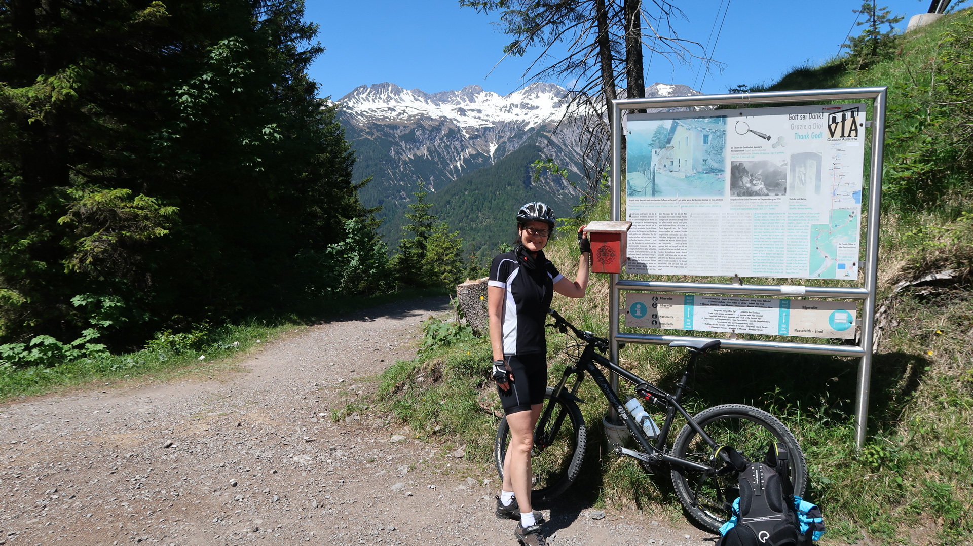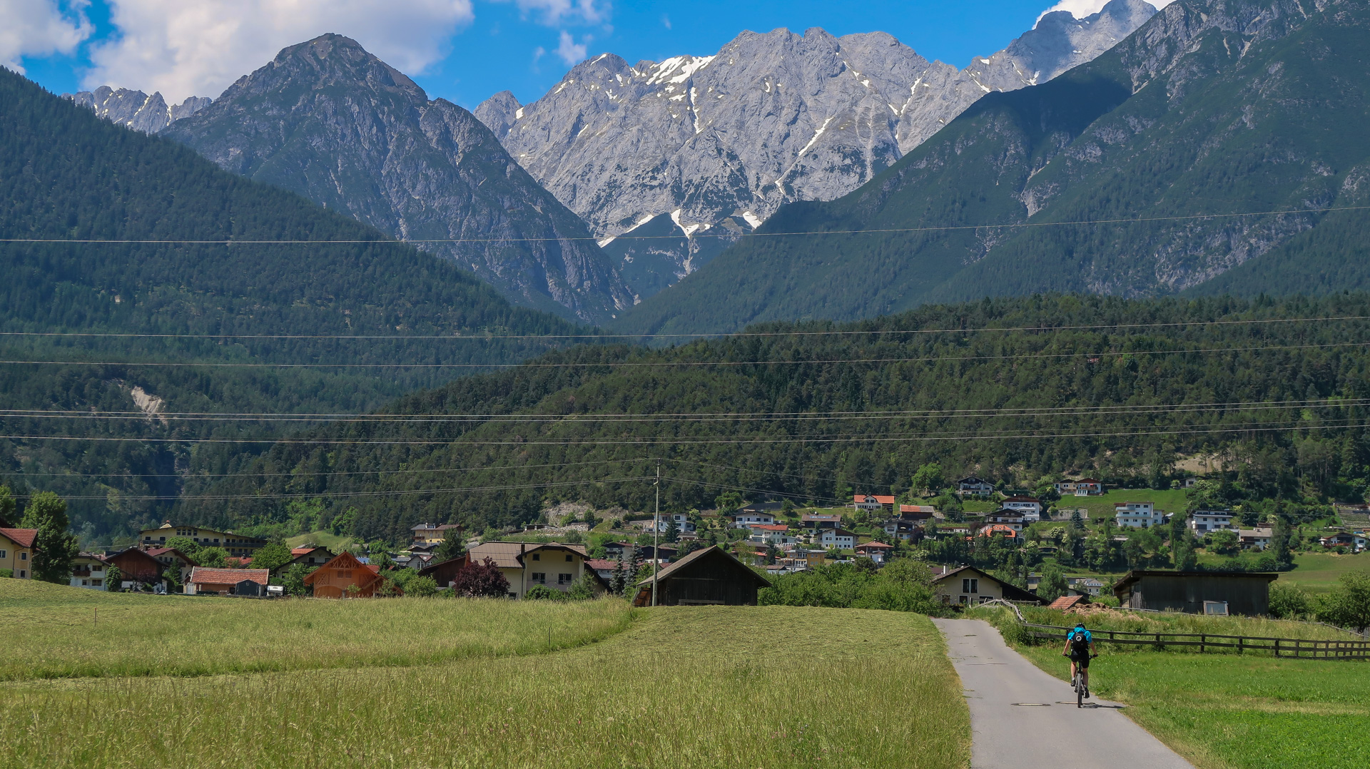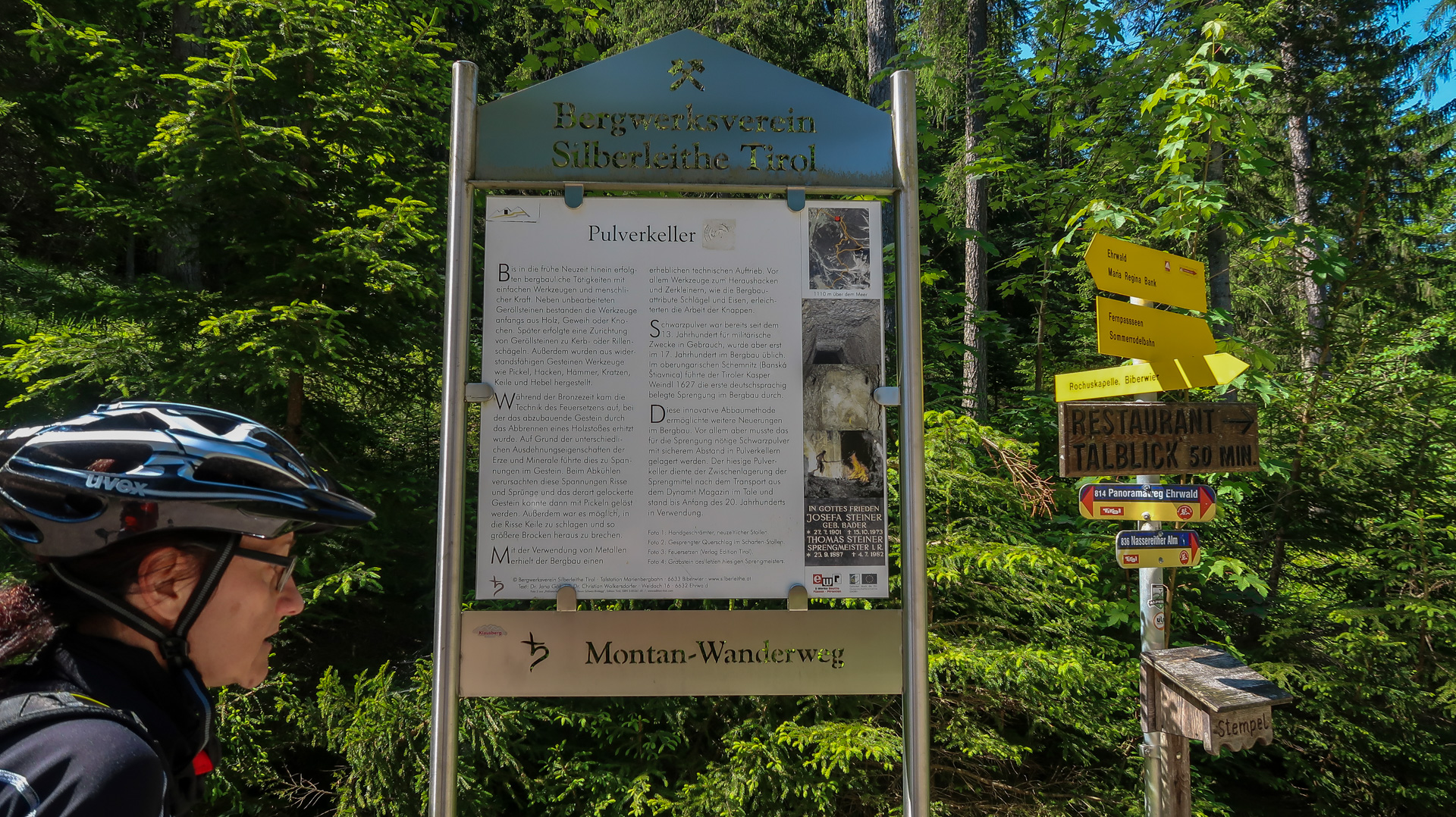 In Nassereith kehren wir ein und lassen uns ein kühles alkoholfreies Weizenbier schmecken. Es folgt nach dem Radweg nach ein schöner Wald- und Forstweg auf der Via Claudia, zum Teil schon etwas Trail lastig. Kurz vor Tarrenz treffen wir auf das Bergbaumuseum mitten im Wald. Von da sind es nur wenige Minuten bis zu unserem Hotel.