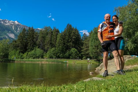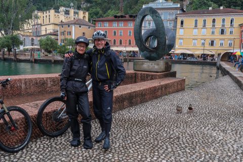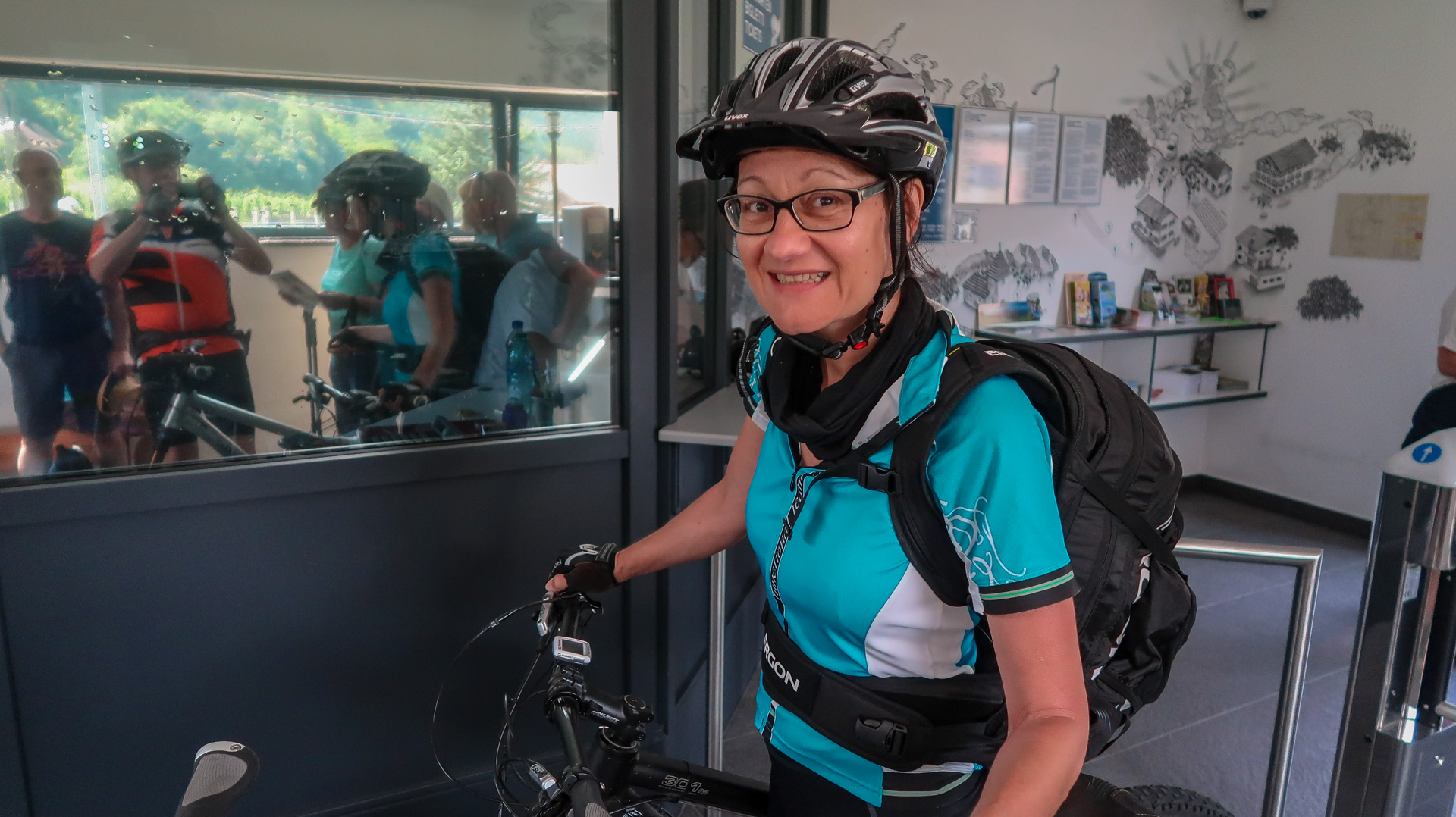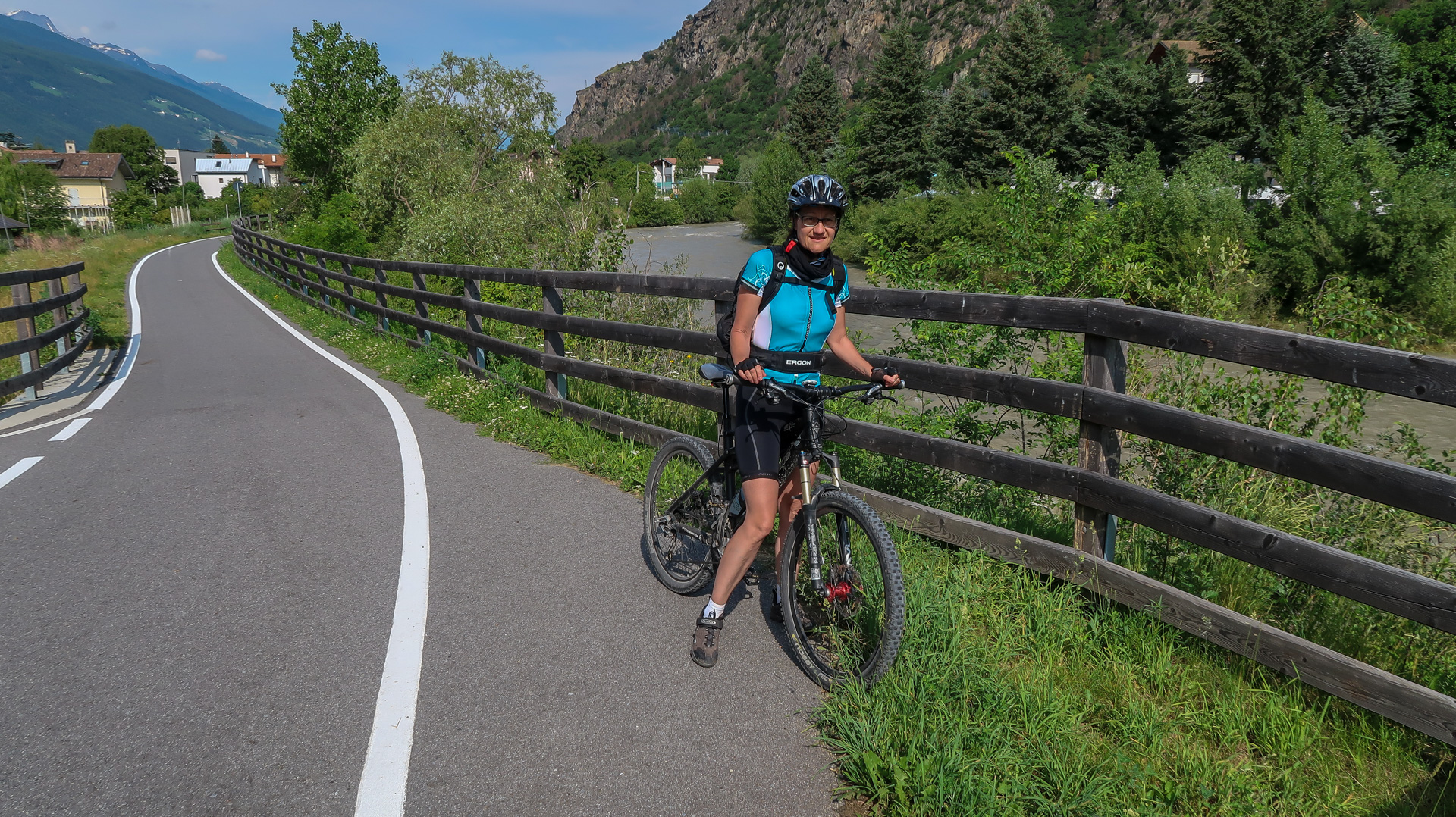 Gut gestärkt durch ein klasse Frühstück machen wir los. Die ersten 28 km auf Radweg nach Raabland verfliegen gerade so, es geht immer leicht bergab, sanfte Abkühlung erfolgt durch den uns begleiteten Fluss Etsch. An der Gondelstation gönnen wir uns eine Kleinigkeit zu trinken, die 800 m Auffahrt macht Spaß ohne mal kurbeln zu müssen.