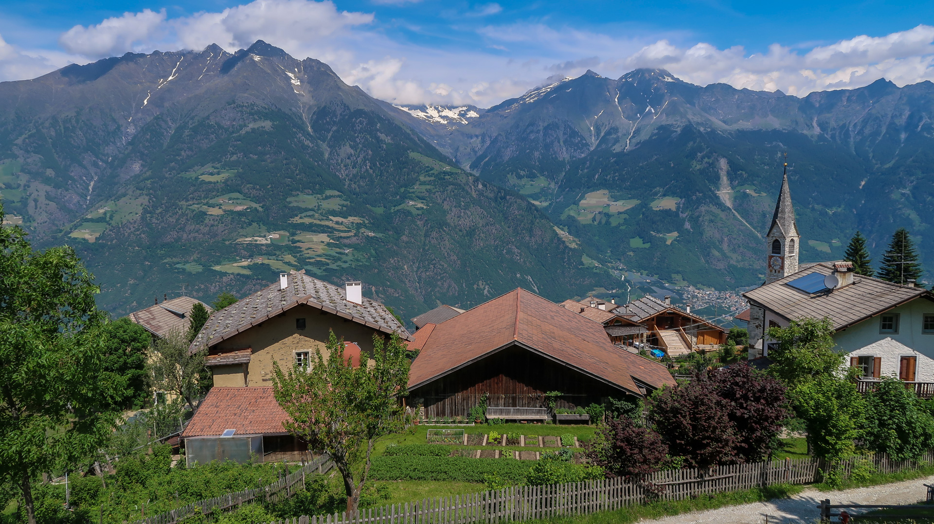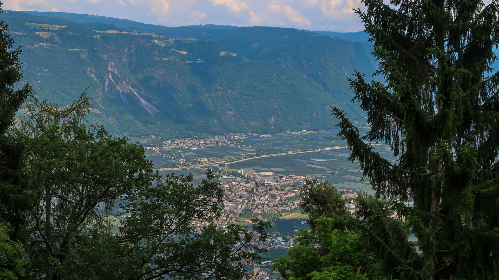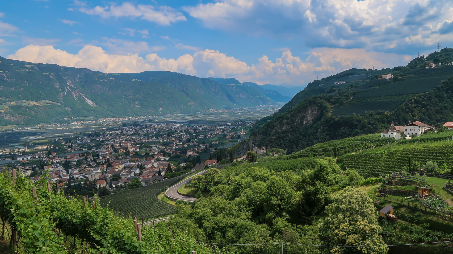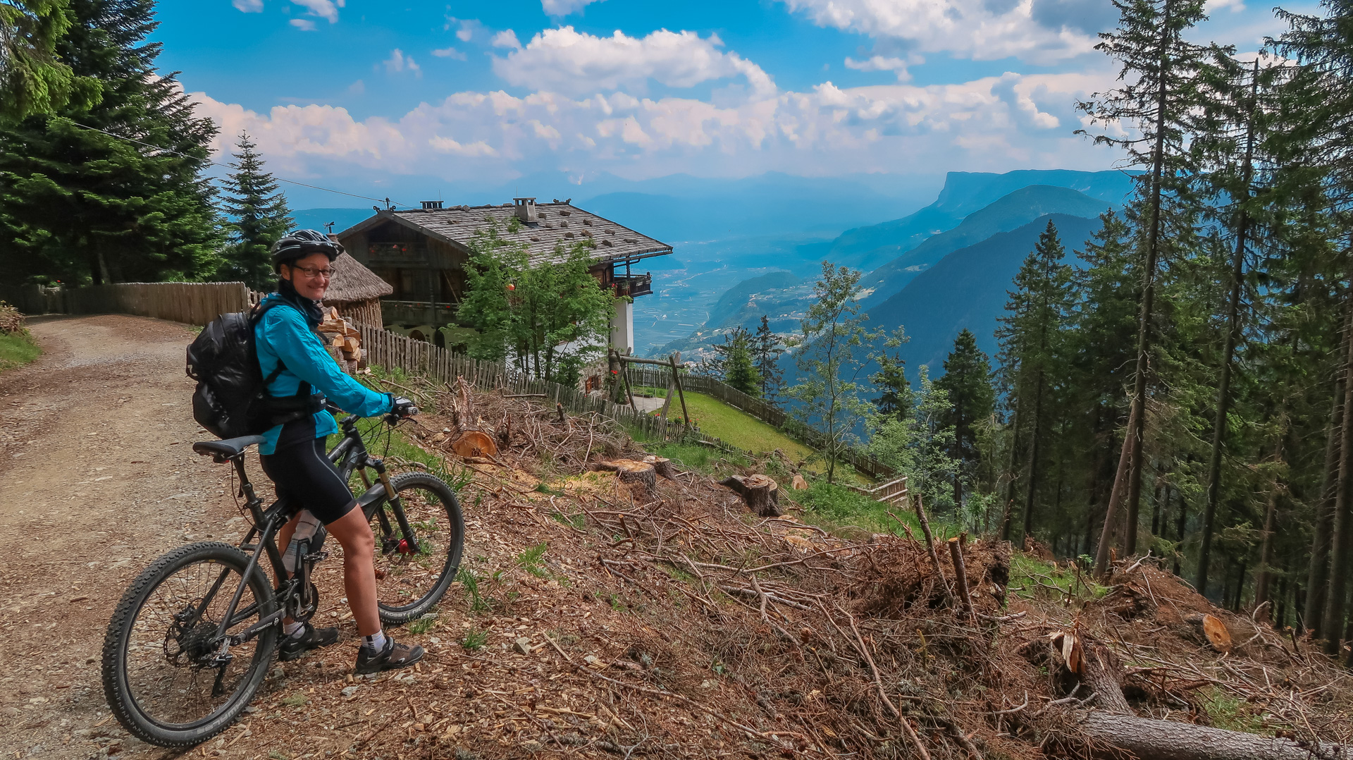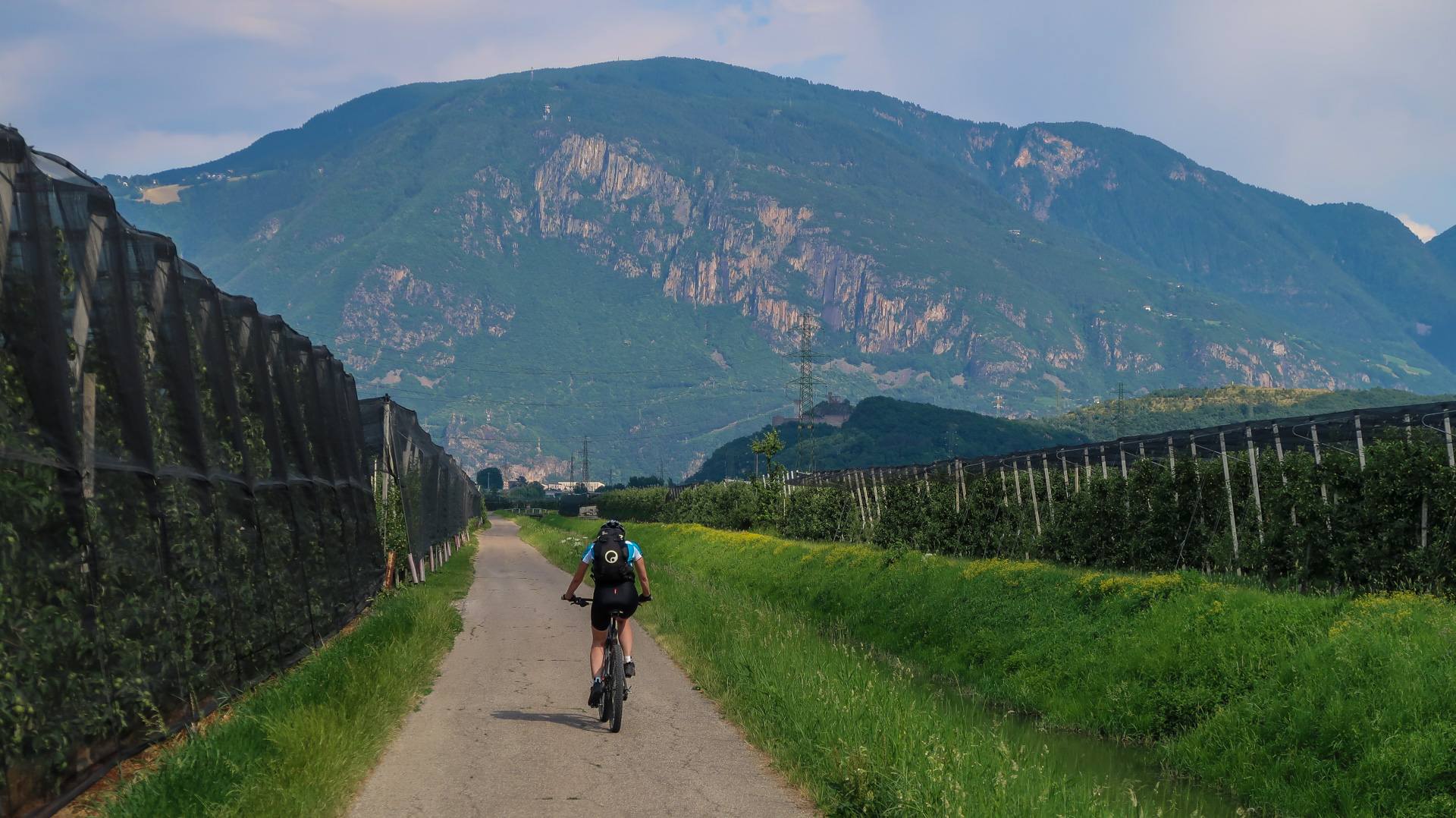 Heute gibt es wieder zwei Möglichkeiten der Streckenführung: Über den Radweg nach Maran und dann weiter nach Eppan oder unsere ausgewählte Variante bis nach Raabland, mit der Seilbahn nach Aschbach um dann 600 hm zur Naturnseralm um übers Vigiljoch nach Eppan zu fahren.