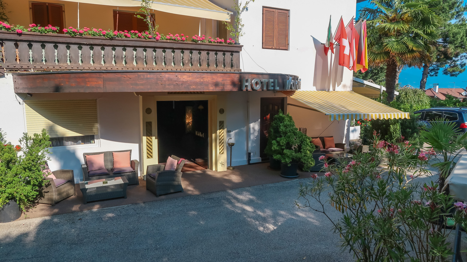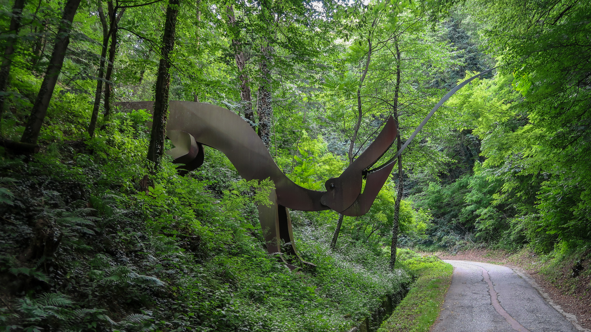 Zum Hotel geht es wieder einmal 200 Höhenmeter bergauf. Irgendwie hatten wir das verdrängt oder sollte ich sagen: Wer hat das denn geplant? Eine kleine, kaum befahrbare Straße führt uns 15% hinauf, wir laufen ab & zu. Vor einer Kurve streckt uns ein Blech-Dinosaurier die Zunge raus als ob er uns verspotten möchte. Glücklich aber kaputt erreichen wir unser Ziel. Der Inhaber begrüßt uns, lässt uns am Hoteleingang auf einer Launch nieder und spendiert uns erst mal ein kaltes Getränk nach Wahl – das nenne ich einen Empfang!